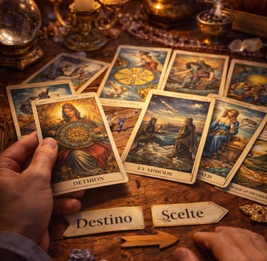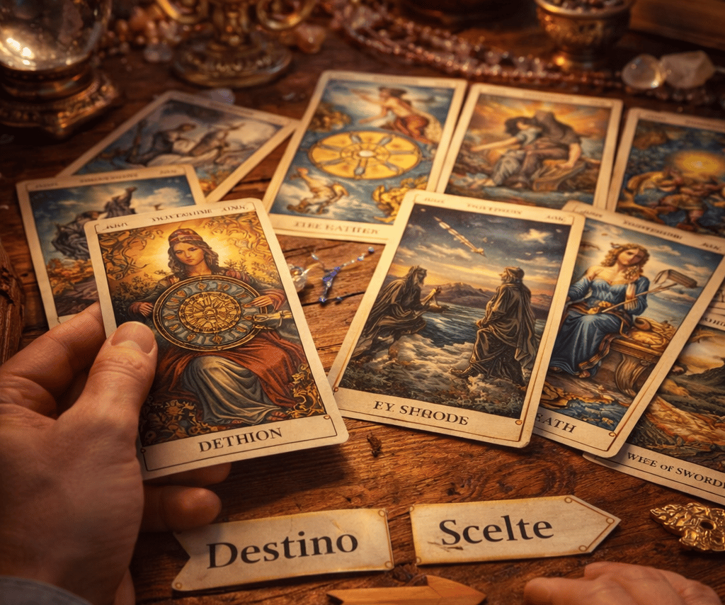 Destino, Scelte e Responsabilità Breve introduzione Una delle domande più comuni quando si parla di tarocchi è semplice e diretta: “Cosa accadrà?” Molte persone si avvicinano alle carte cercando una risposta precisa sul proprio futuro, come se esistesse un destino già scritto da scoprire. Ma la realtà è più complessa. I tarocchi non sono una sentenza immutabile sugli eventi, bensì uno strumento simbolico che può aiutare a comprendere meglio le dinamiche in atto nella propria vita.